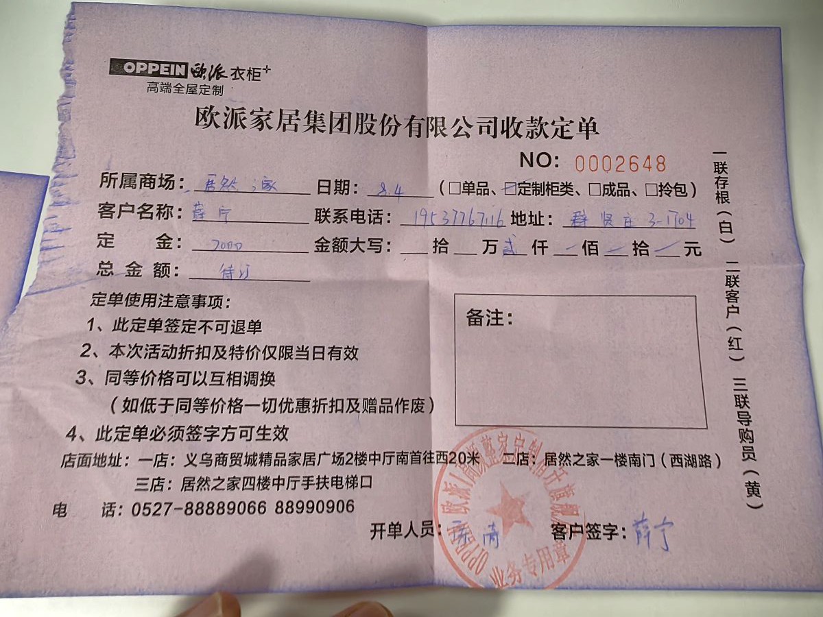 | 投诉类型 | 装潢材料 | 投诉人 | 薛** | 被投诉单位 | 欧派家居集团股份有限公司 |