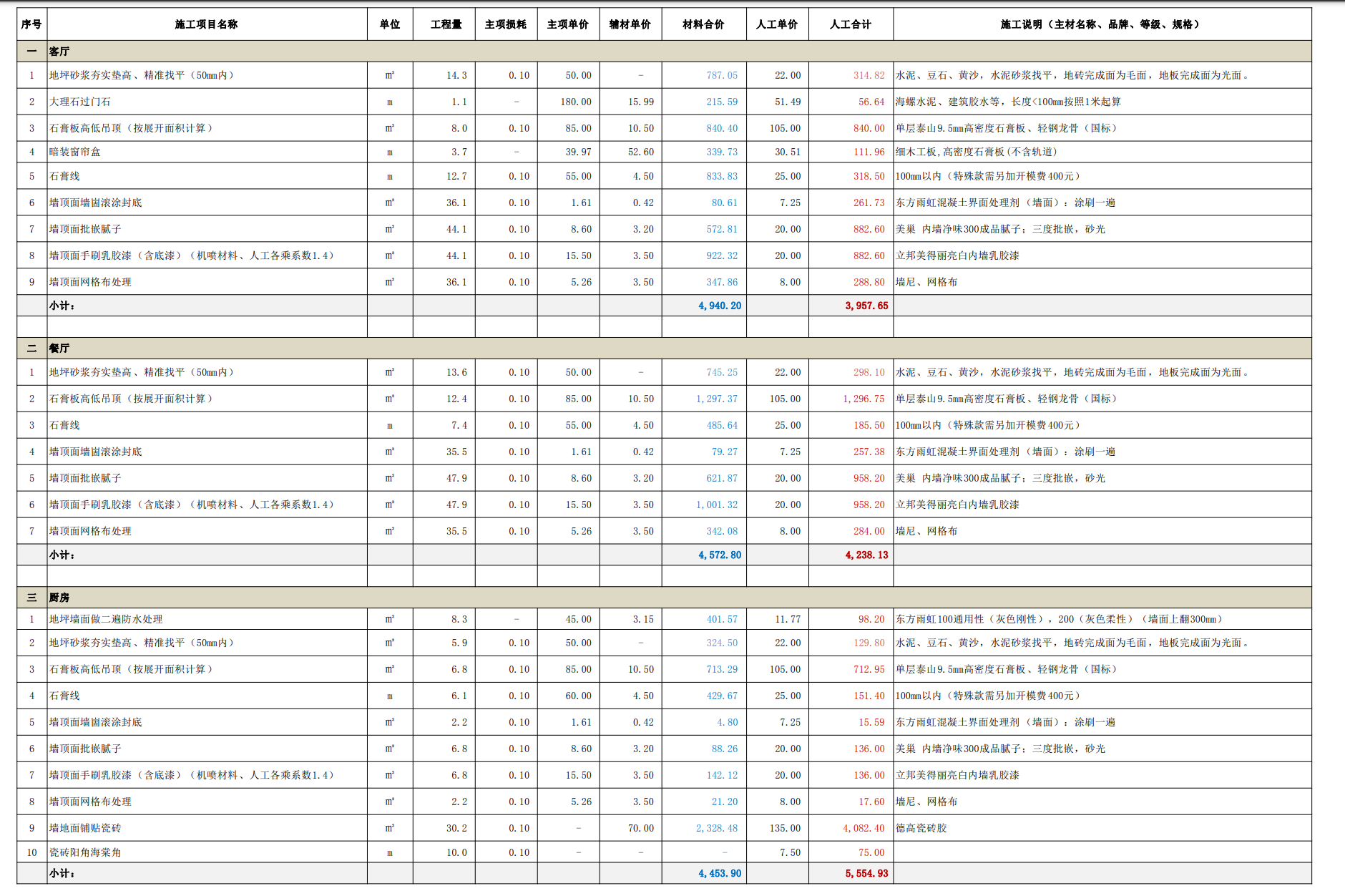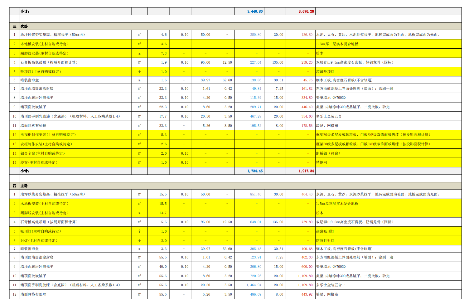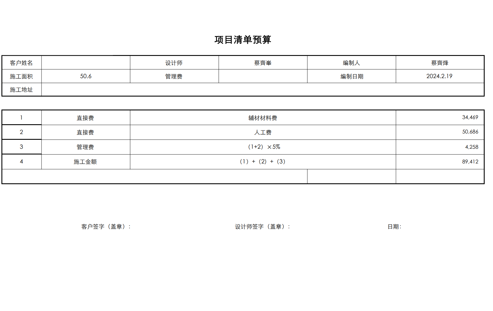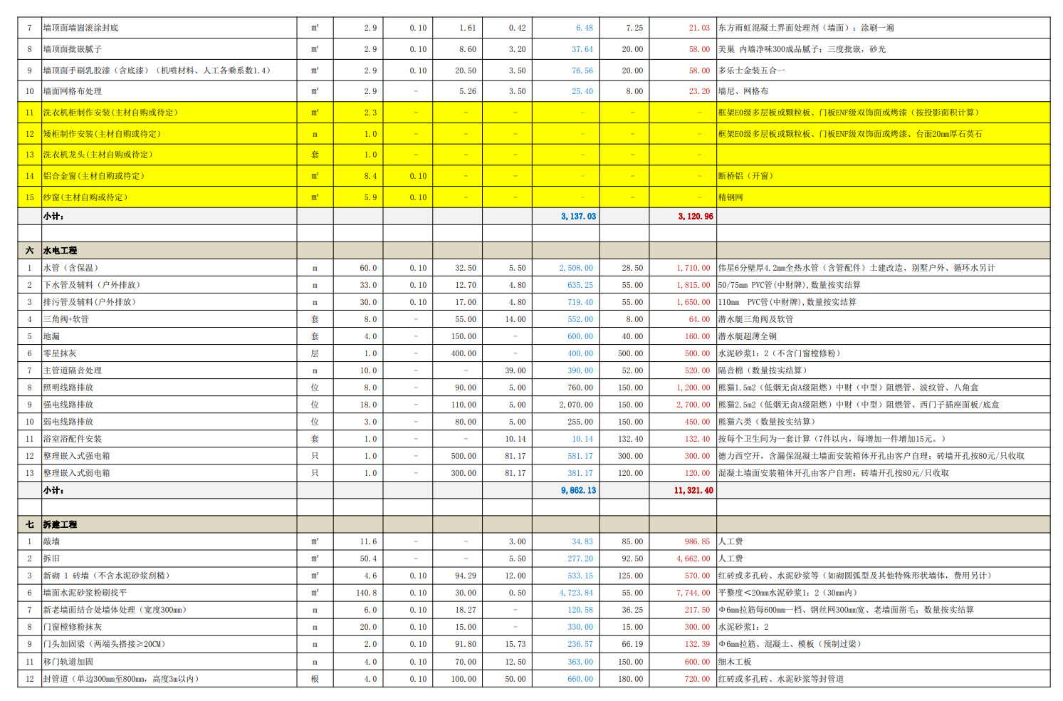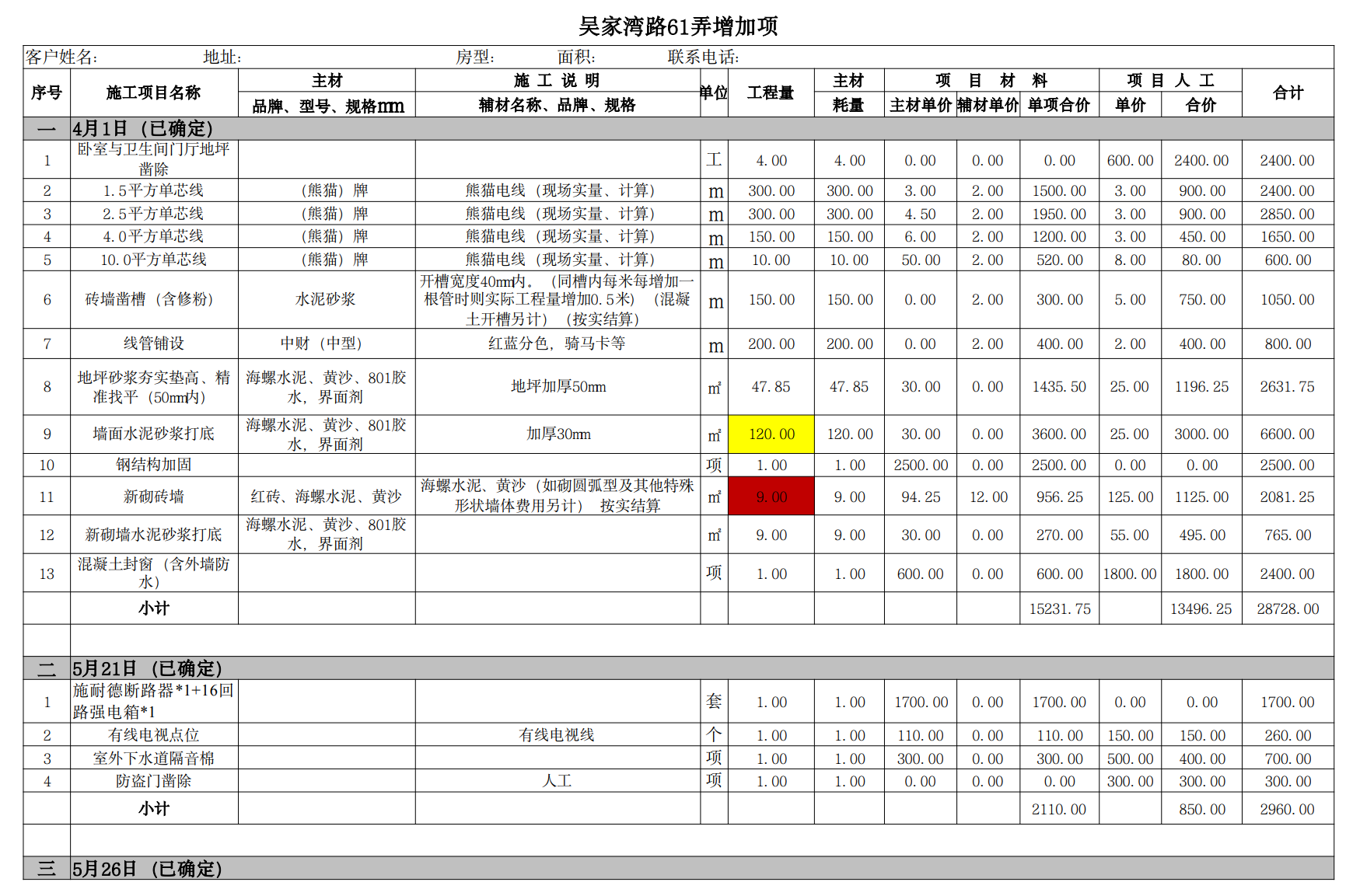 同公司、同装修经理、同设计师、同施工材料、相差4天开工的另一处工地报价