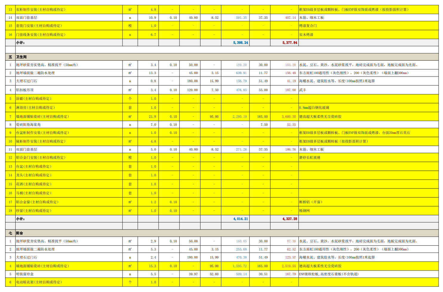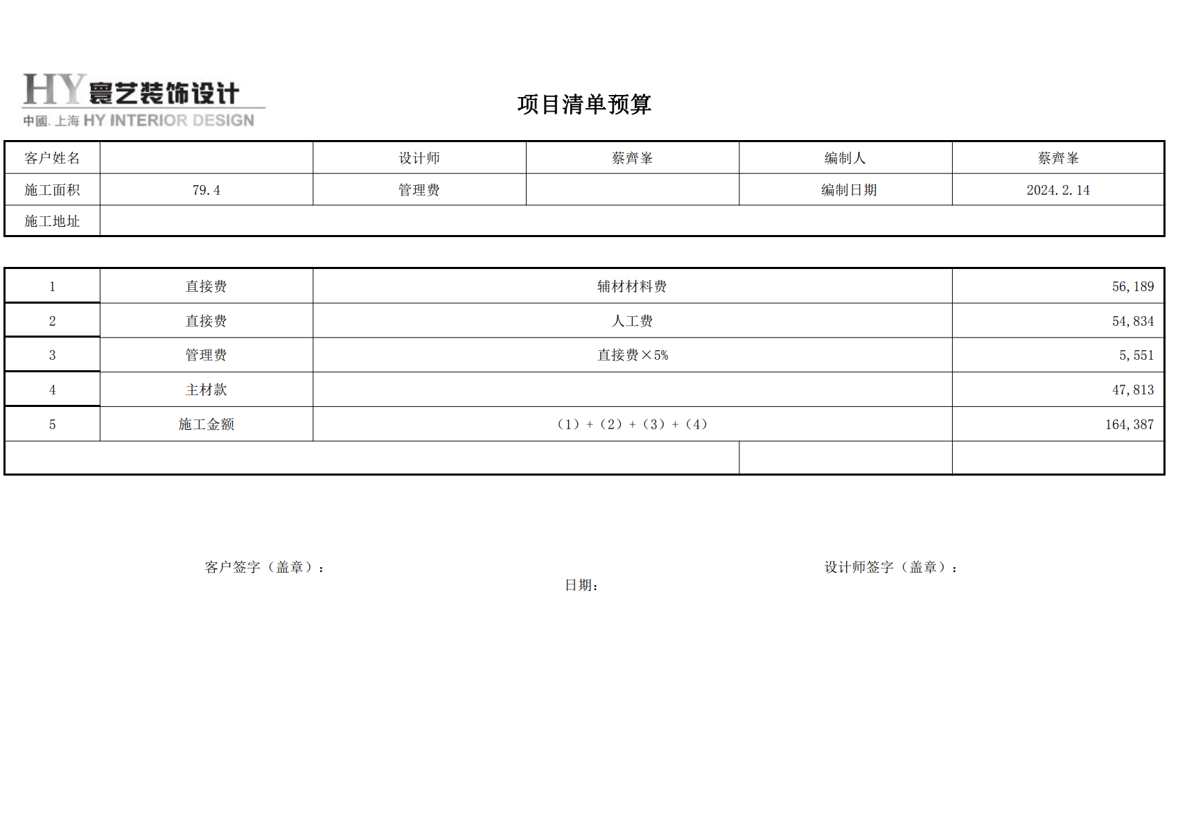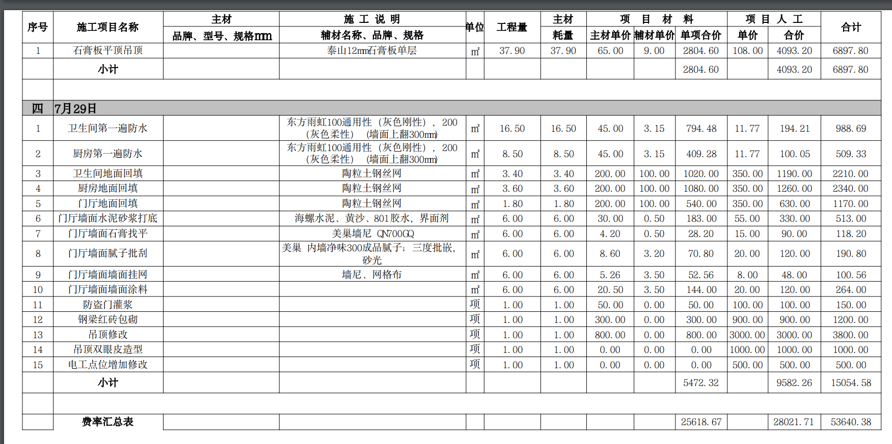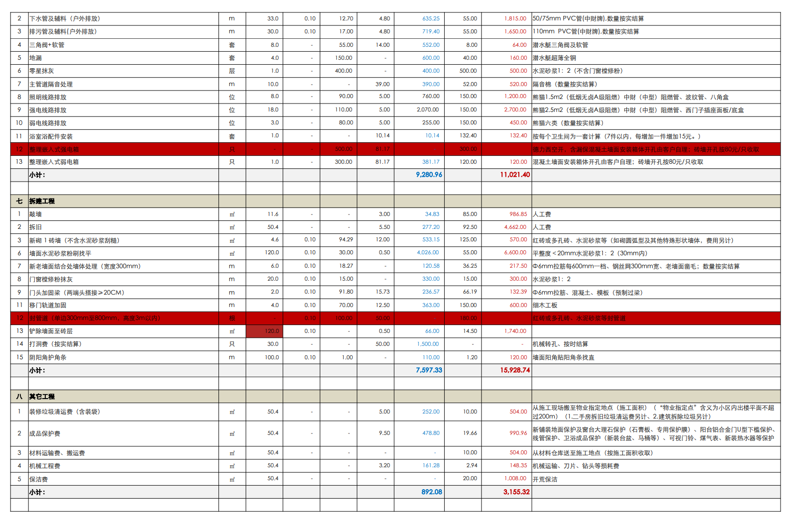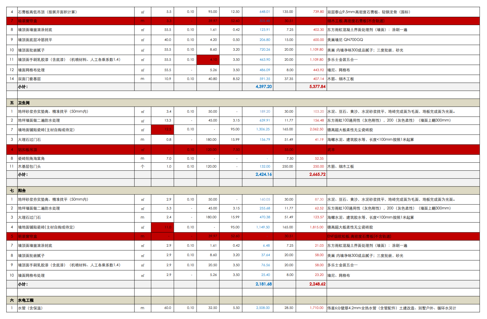 同公司、同装修经理、同设计师、同施工材料、相差4天开工的另一处工地报价