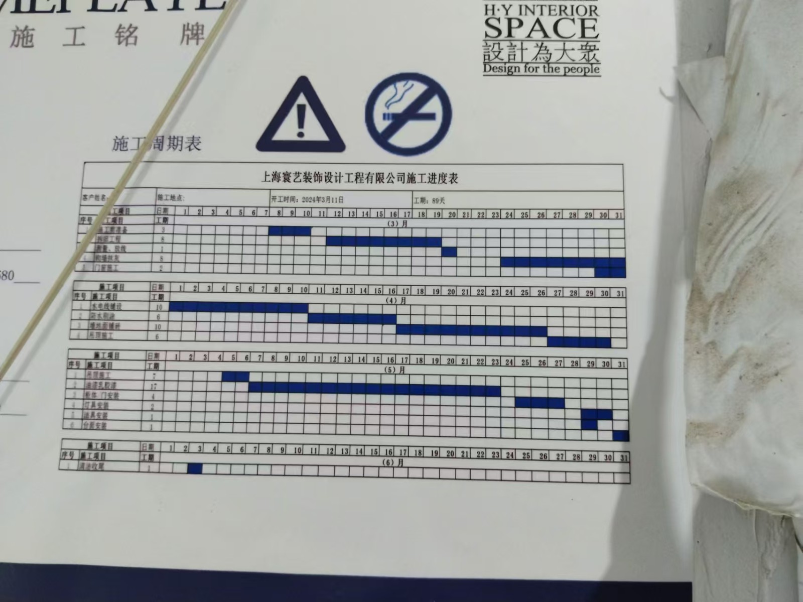 上海寰艺自己贴在工地门口的工程周期表