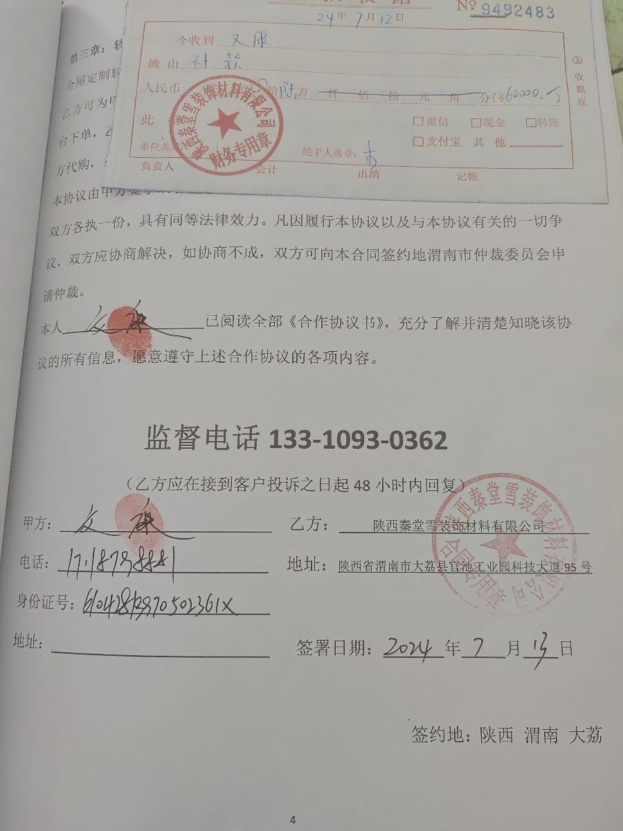| 投诉类型 | 合同纠纷 | 投诉人 | 文** | 被投诉单位 | 陕西秦堂雪装饰材料有限公司 |