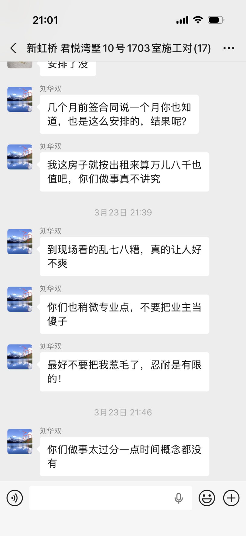 | 投诉类型 | 施工拖延 | 投诉人 | 王** | 被投诉单位 | 上海木梓林设计装潢有限公司 |
