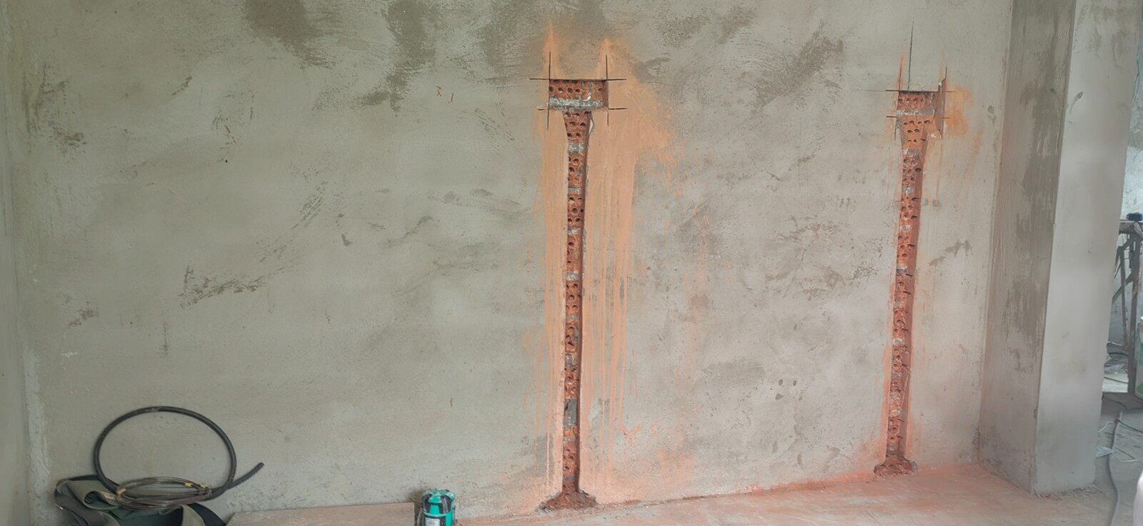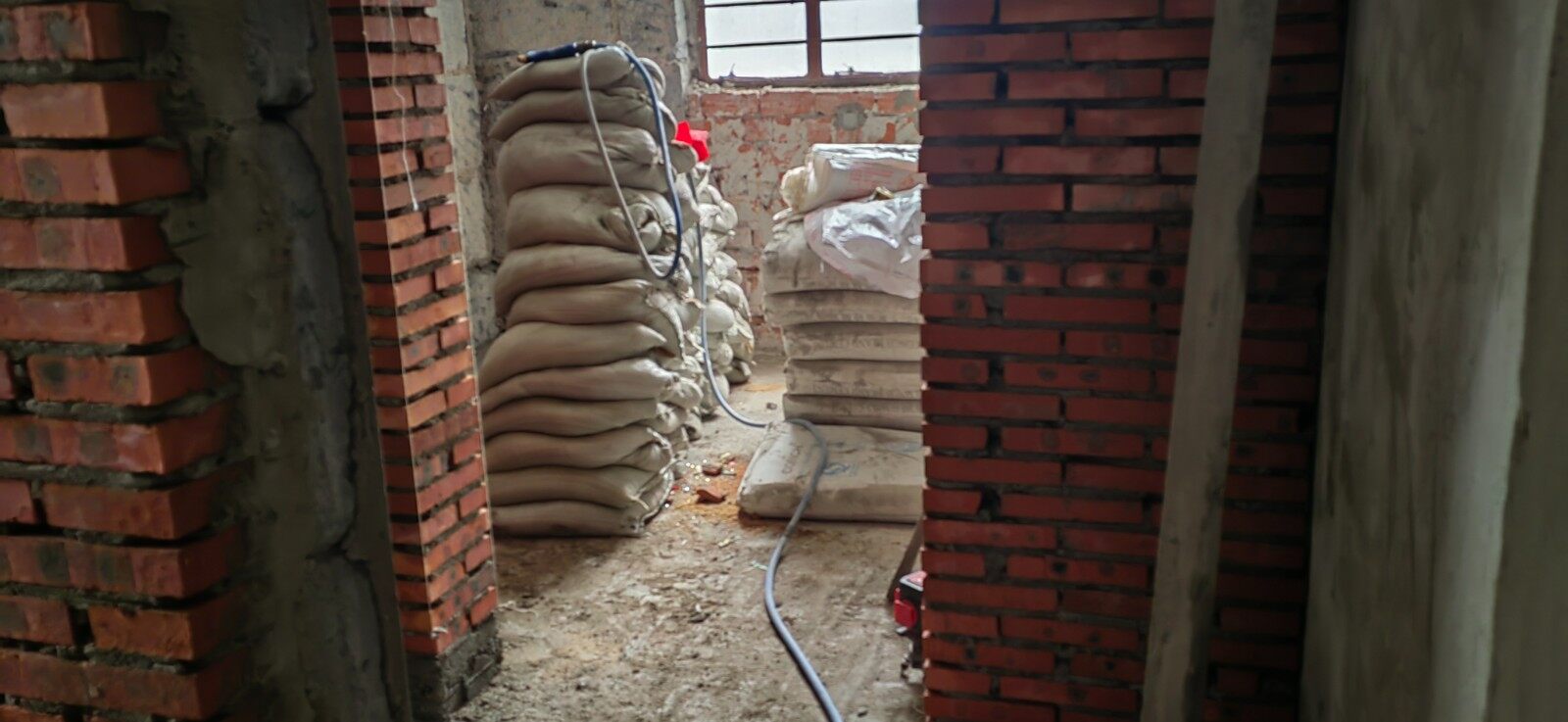 泥工正在粉墙砌墙中,这个星期粉墙结束,准备下周水电开始进场