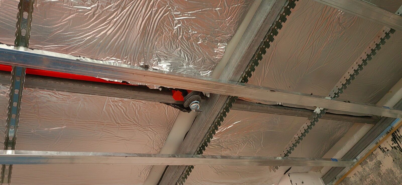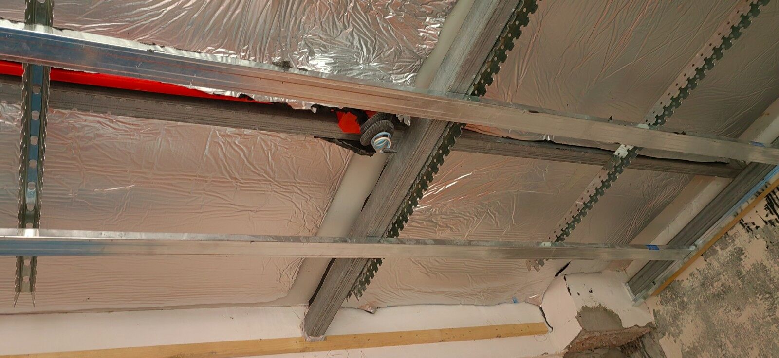 木工正在有序施工中,为了保证质量情况下,黄梅天雨水多等待墙面干透施工,天井夹心板,为了隔热隔音免费增加隔音棉铺顶,后期安排油漆工施工,欢迎装潢网监督!尽早完美落地!