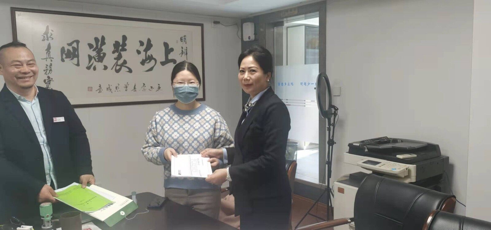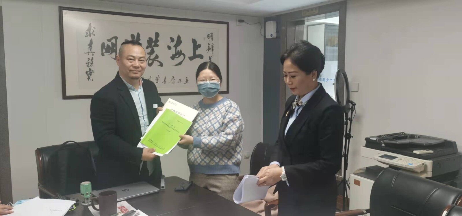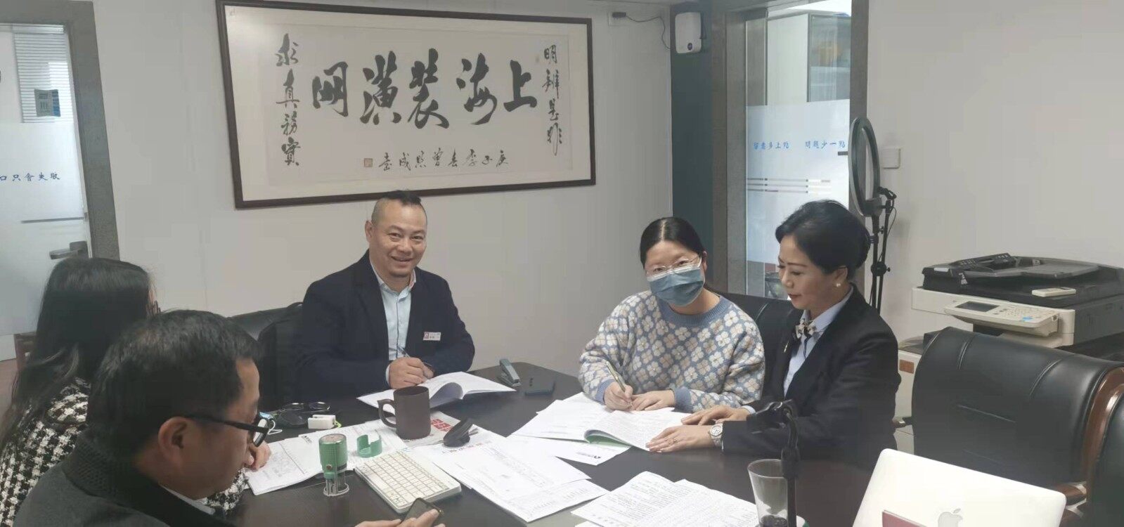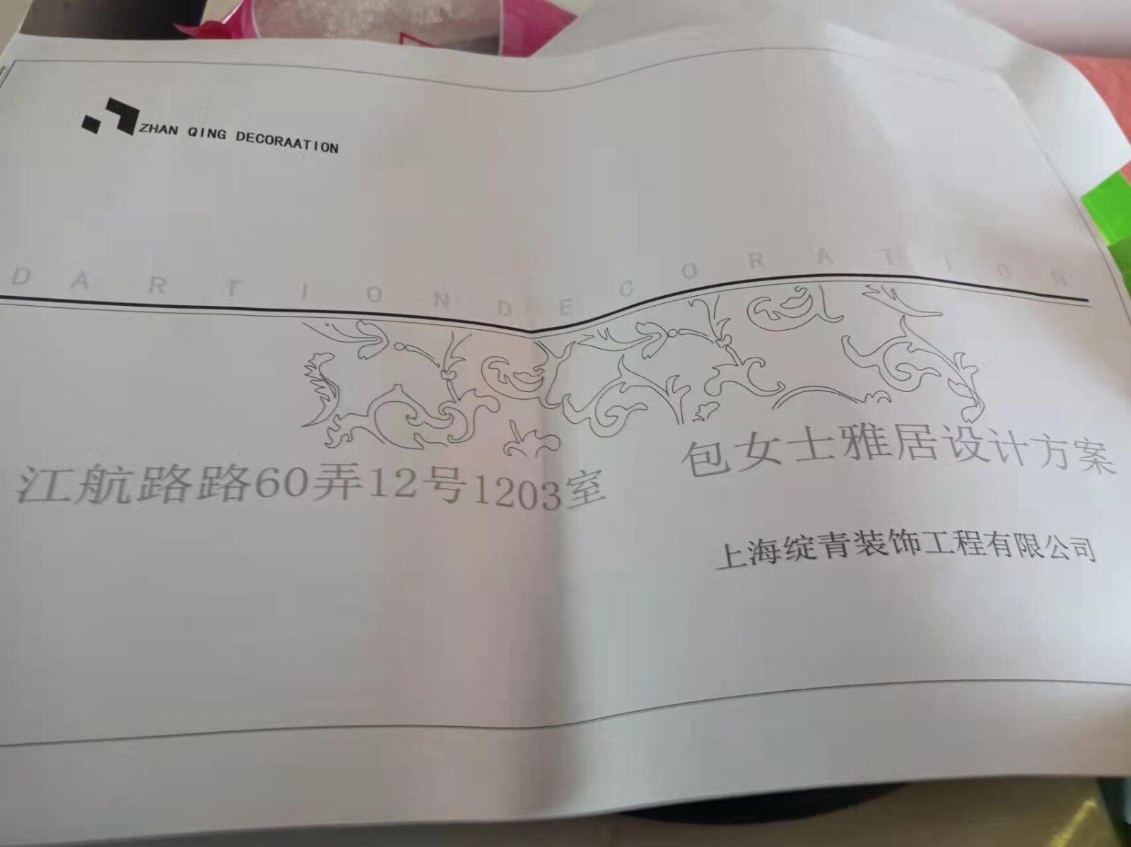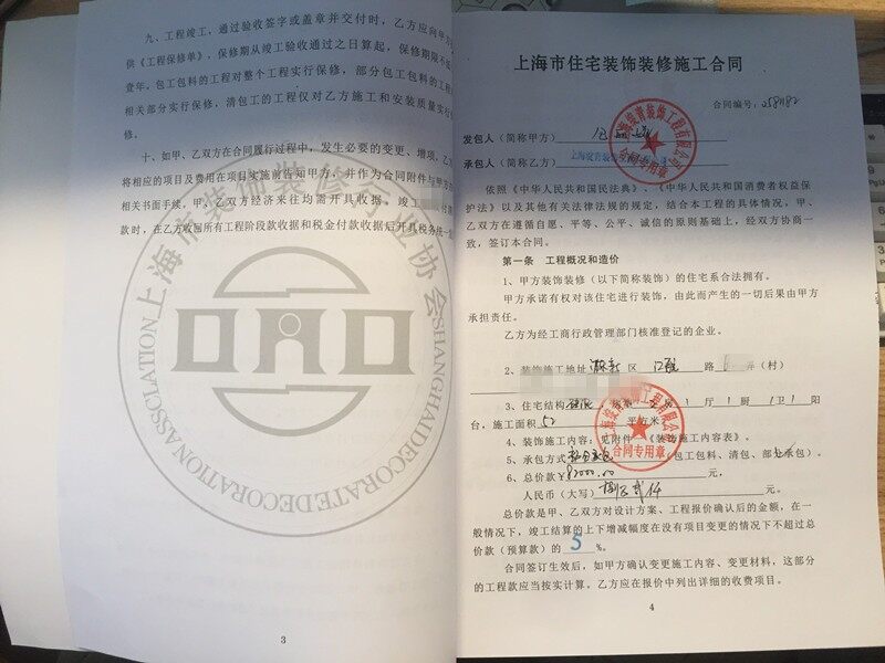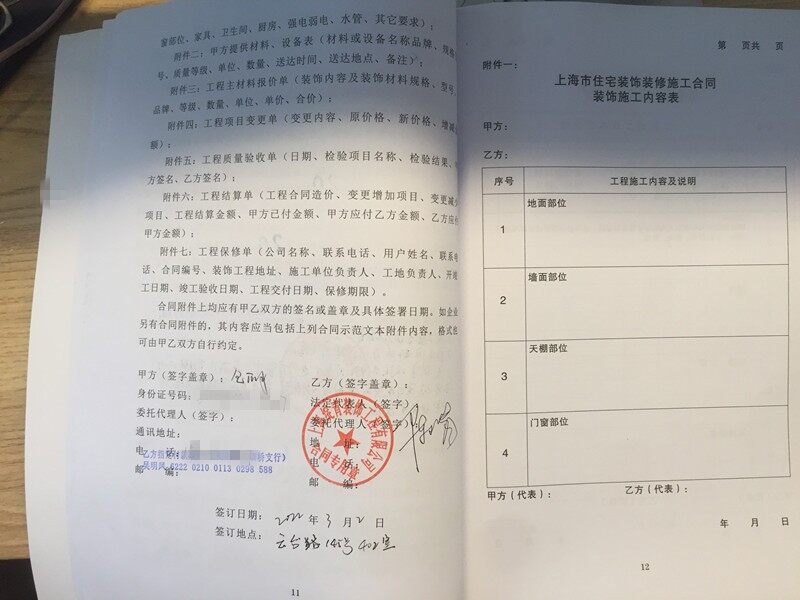2022年3月2号装修业主包女士及绽青装饰公司设计师及负责来到装潢网办公室,让装潢网邱老师帮助审核装修合同及装修报价,最终业主在装潢网签订了装修合同,地址是闵行区浦江镇江航路60弄xx号1203室,