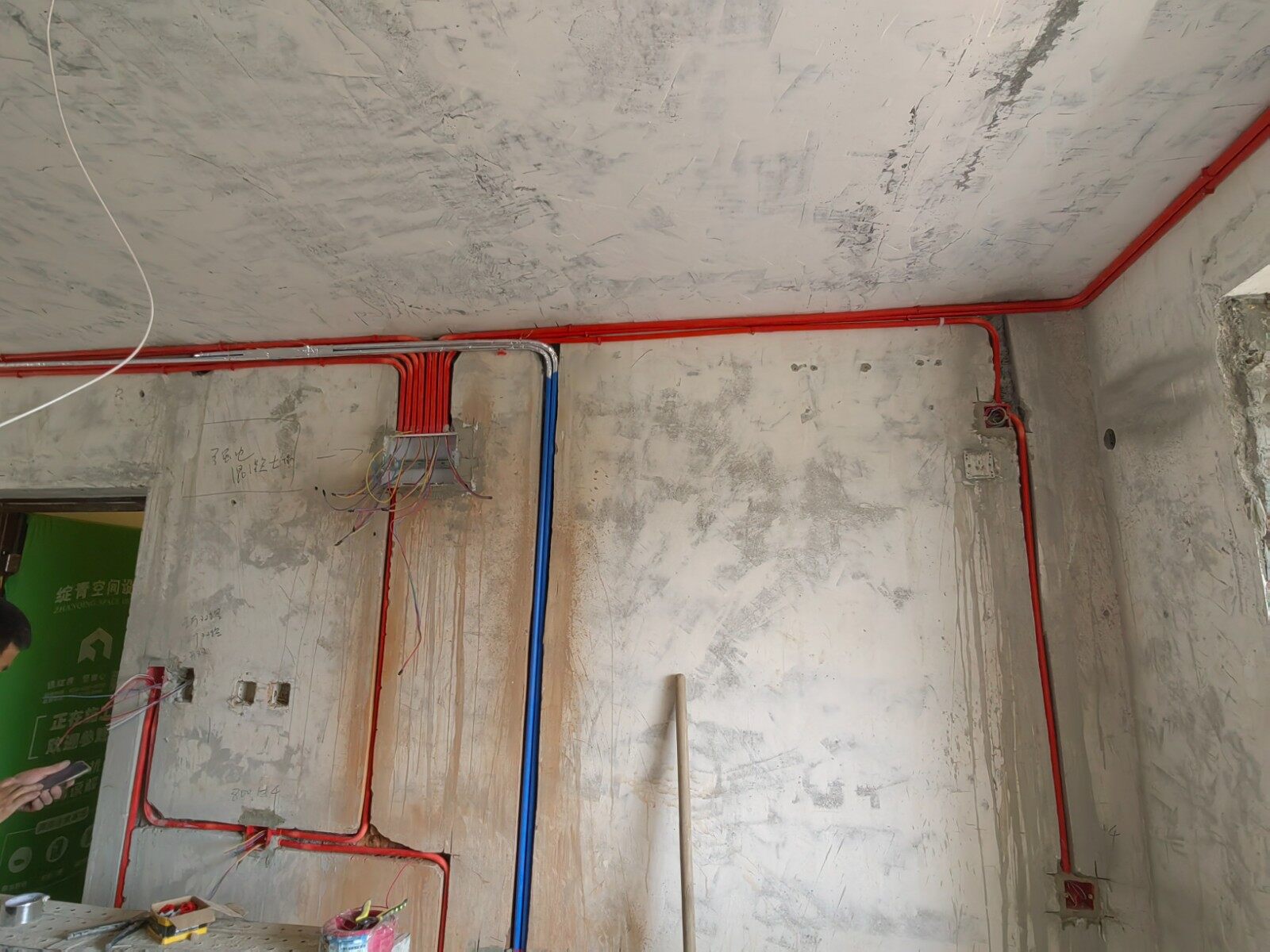 原合同是局改,水电不变动的;因为疫情反复耽误了很久时间,复工后又因为疫情加上学生上课,业主索性让停工,在此期间业主改变的想法想把水电重新做,然后6/28我们签订了水电补充协议,后续就开始正式开始做水电;水电工已正式上岗目前已开好槽,开始排电线了