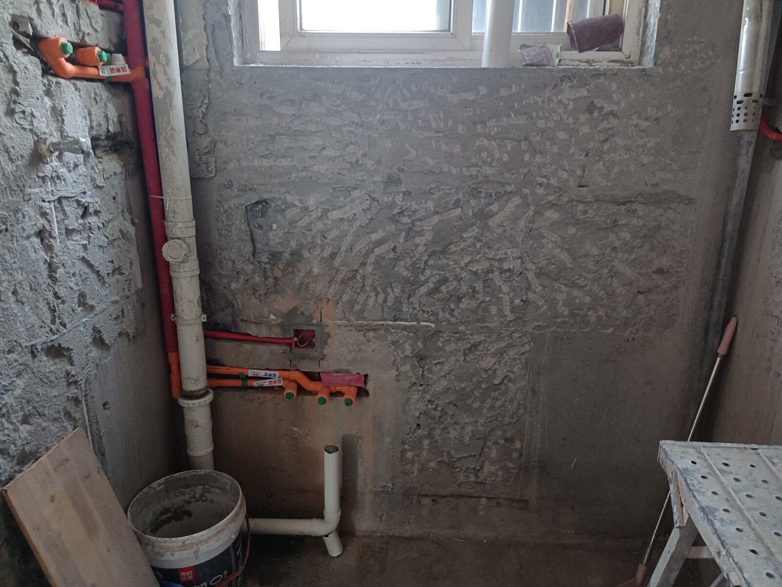 水电已在井条有序地进行中,因为之前是水电不动,现在业主要求水电也要整改;北阳台水管可以从顶部改到西面的水管中,后期需要北阳台吊个顶