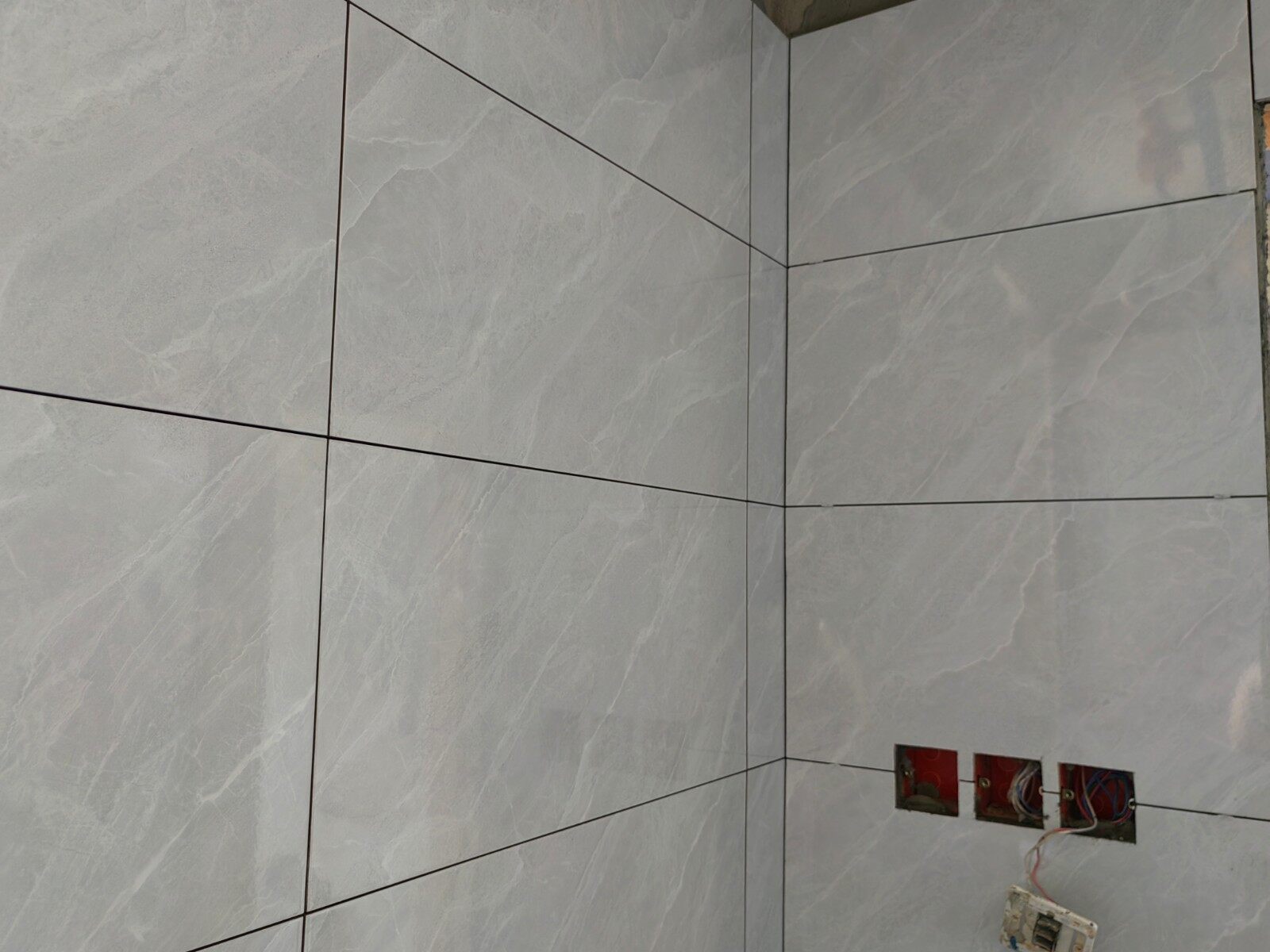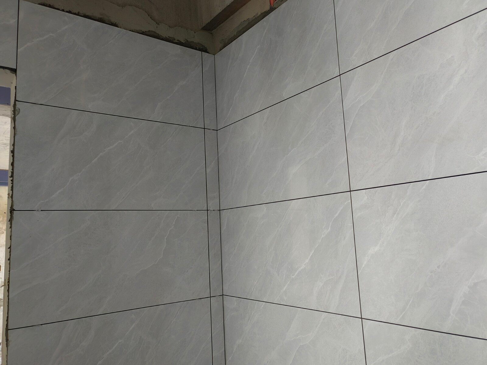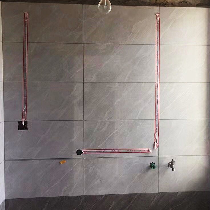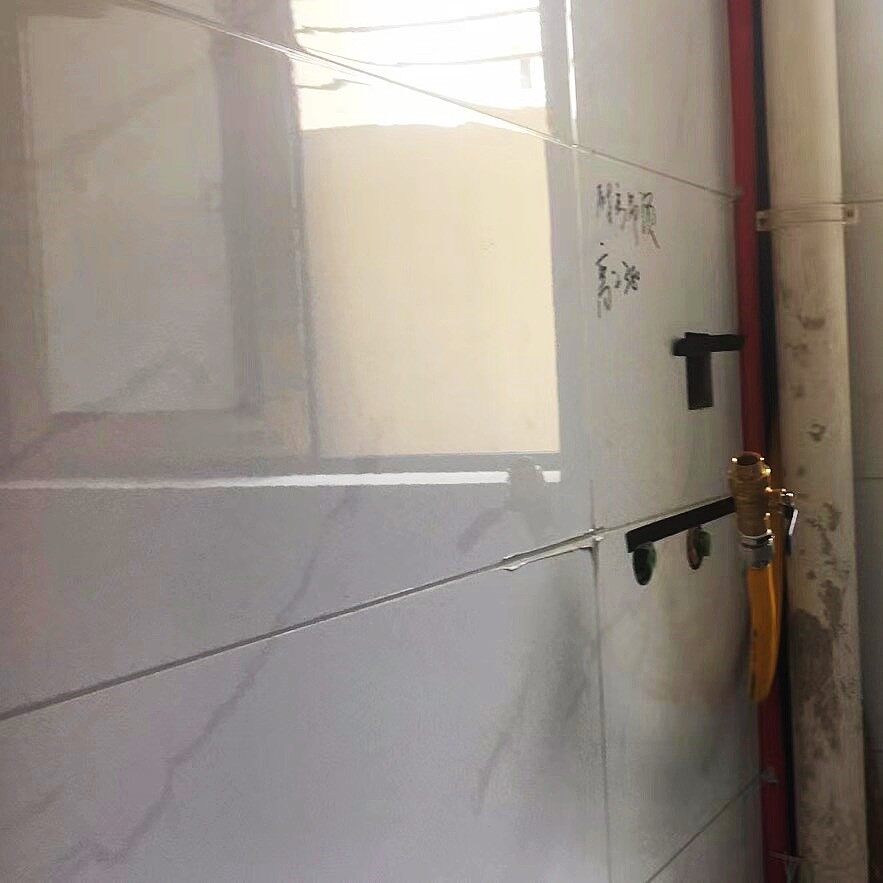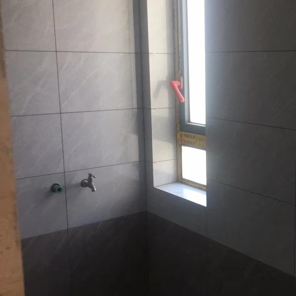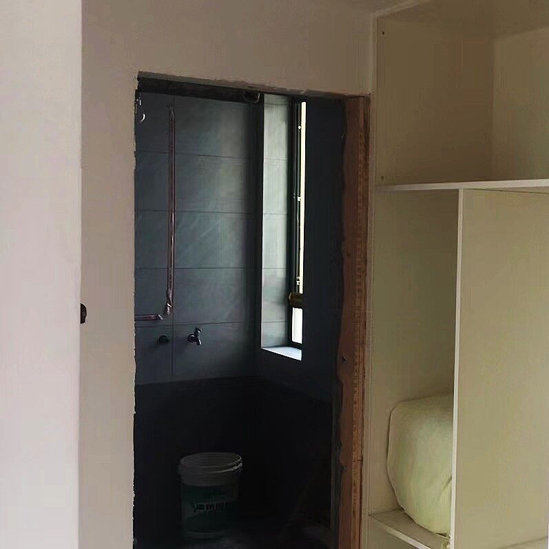 今天,去工地做施工巡视,经过师傅们一个多月的辛苦施工,顶着连续的高温天气,已经达到了泥木施工尾声。在观察卫生间墙地砖铺贴情况的时候,发现墙砖已经贴好,对于管道阳角和窗台阳角处,师傅门全部采用的45度磨边拼贴的工艺。由于原墙面垂度不好,我观察到师傅们用水泥把墙面的垂直度调整到基本一致才开始贴砖,以便保持墙砖的垂直性。我对在40度高温下坚持施工的泥工师傅还能够保持如此的细心表示感谢!由于地砖还没有铺贴,可以明确看到防水情况,前期已经做了一遍防水,现在可以明确的看到墙面有2遍防水,地面至少做了3遍防水。经过了解,师傅在现场做了48小时闭水试验,完全没有任何渗水的情况发生。