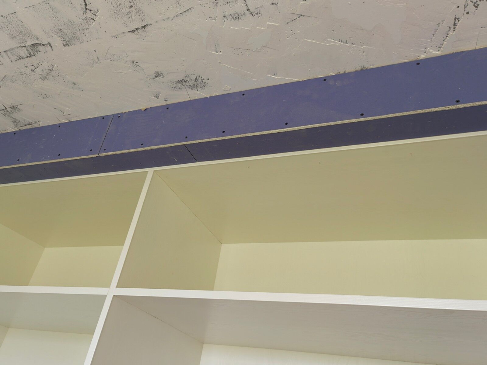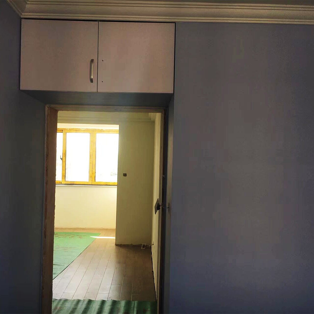 再看木工师傅,门套打底都是采用双层木工板到底,保证将来安装门套的时的平整度。现场制作的柜子顶部都采用双层石膏板进行封柜头,保证柜子顶部将来没有灰尘,并提高了房间的视觉效果。再柜子的侧边,用石膏板直接进行侧封,做涂料,将来不会出现材质上的视觉疲劳。