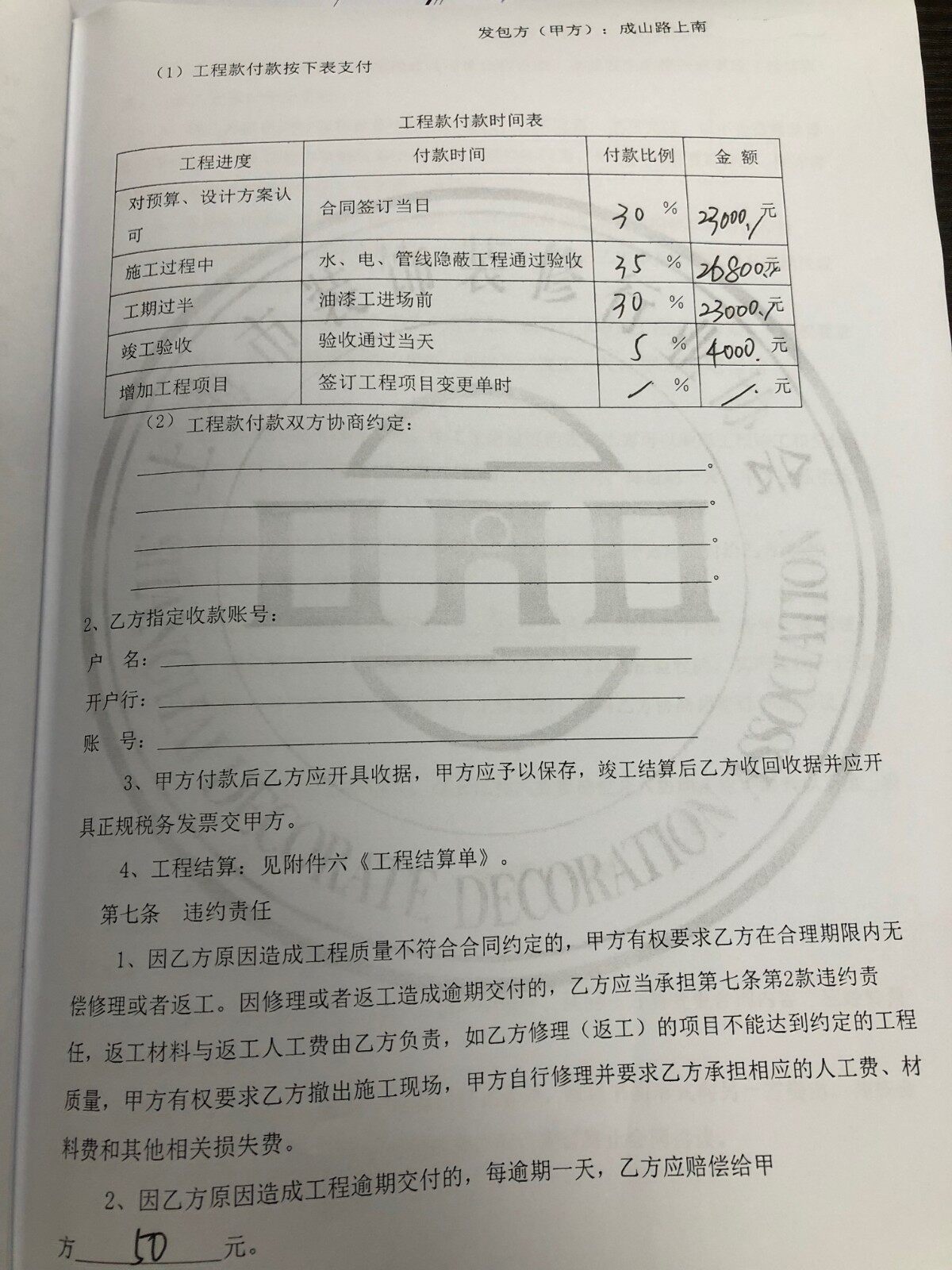 今天和侨鸿一起到装潢网办公室,老师们非常认真细致的帮我解读了报价单的内容,侨鸿的报价也比较清楚全面的,在装潢网老师的协助下签订了合同。希望顺利开工,按效果落地。也感谢老师们。全程有网络监督在线播报,有我们业主监督,装潢网人民监理员监督,业主装修评论结果,巡视员评论结果,最终装潢网给这个项目打分业主给予评价。