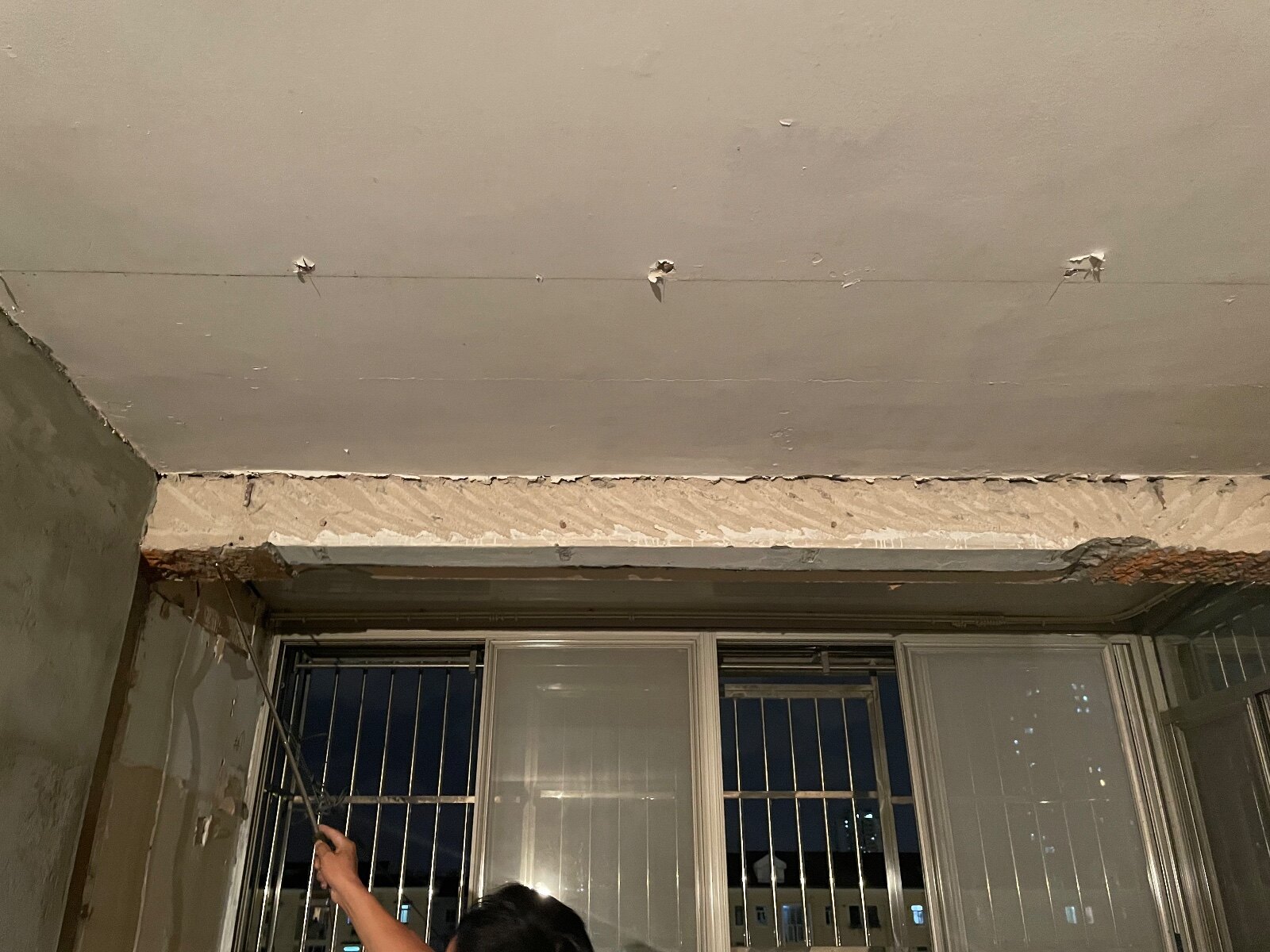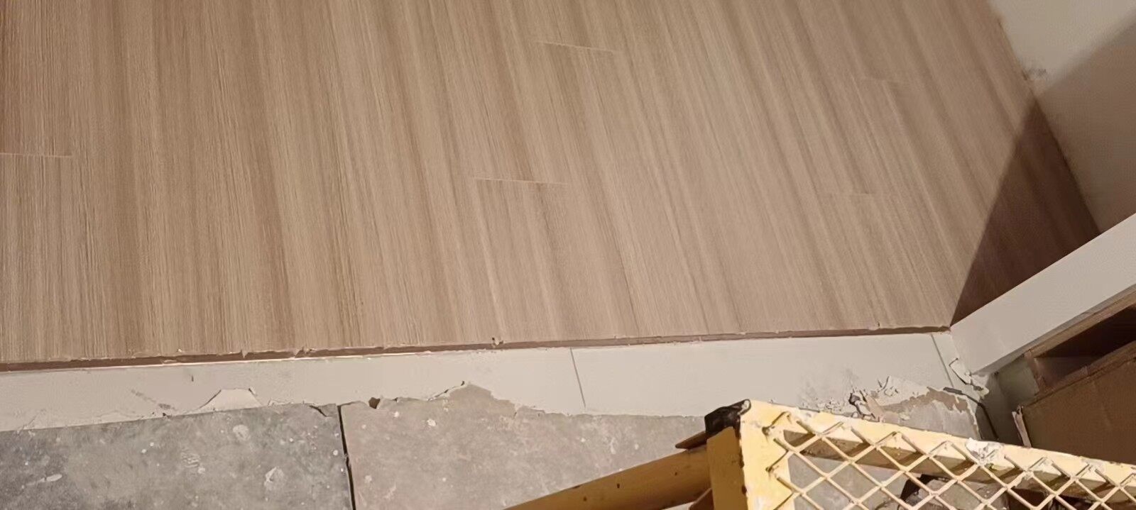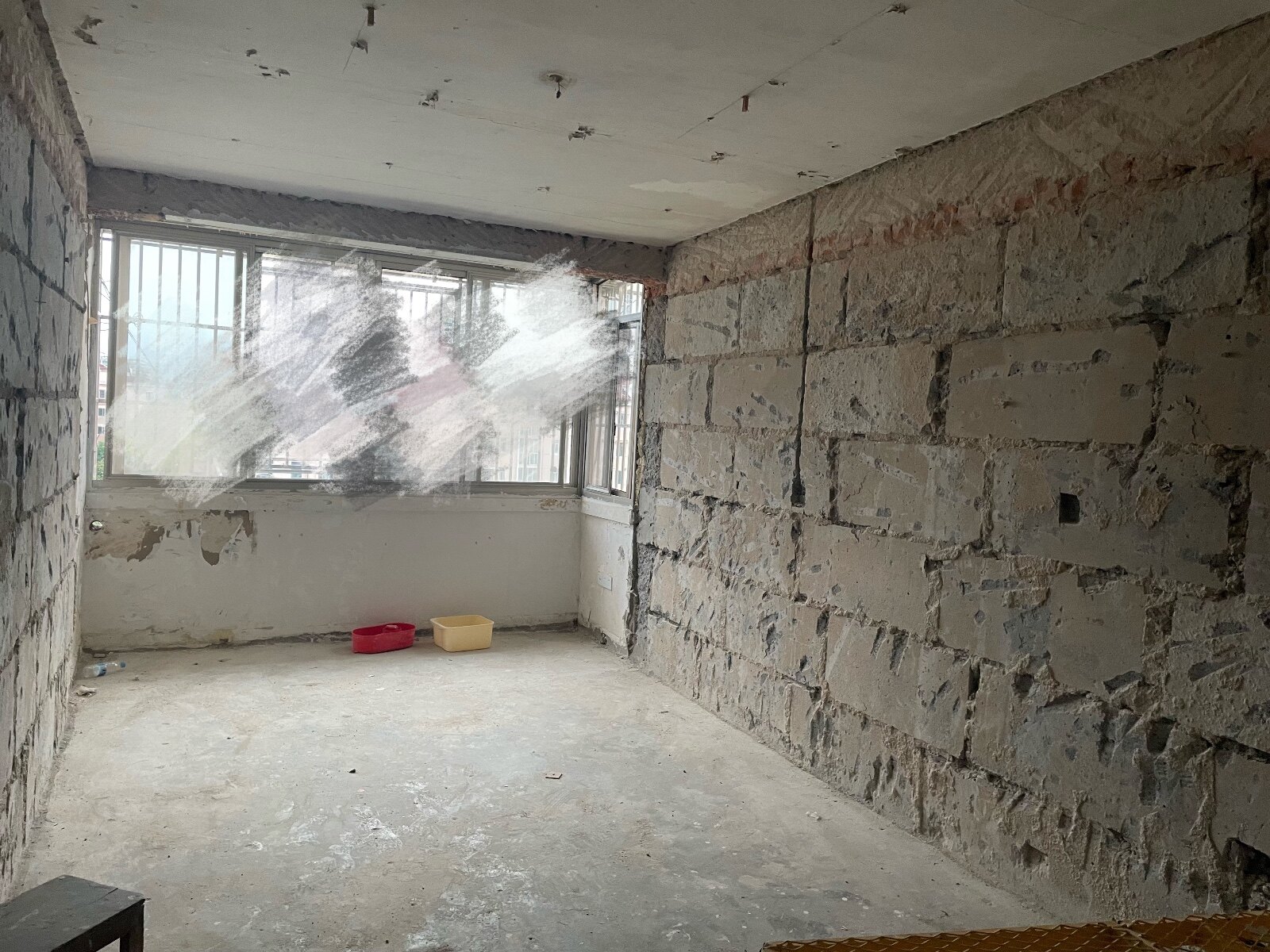 开工第二天,拆除工程完成了,现场干净整洁,挺不错的。阳台的漆师傅说不能用冲击钻,监理说等油漆工进场时候把墙皮铲掉重新上漆。阳台一侧居然是在原有墙体的里面打了一层很薄的板子,肉眼看都是受潮了的,后面要请监理看看怎么处理一下。