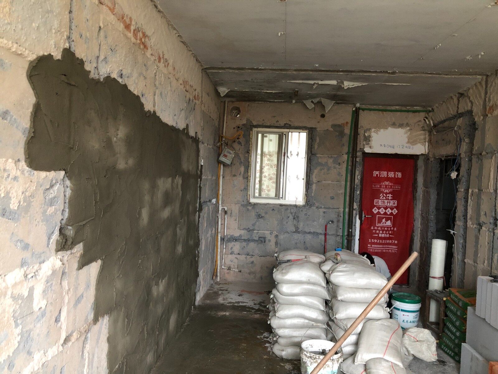 9月28日水电已验收,瓦工材料已就位,随后进场施工