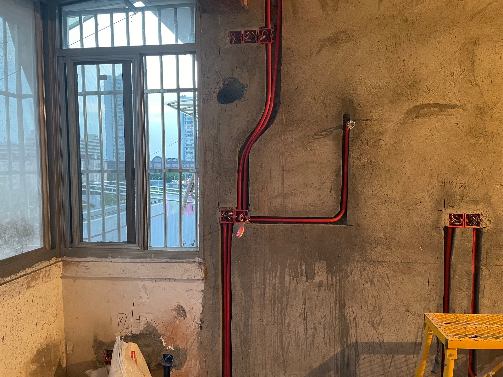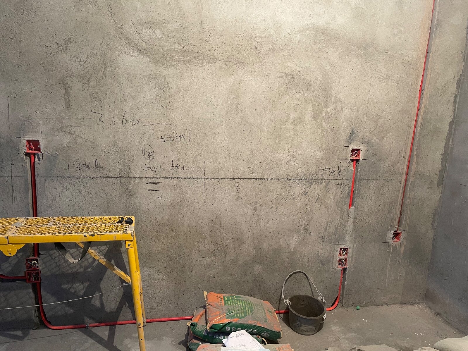 墙体粉刷中,水电定位随后几天进行