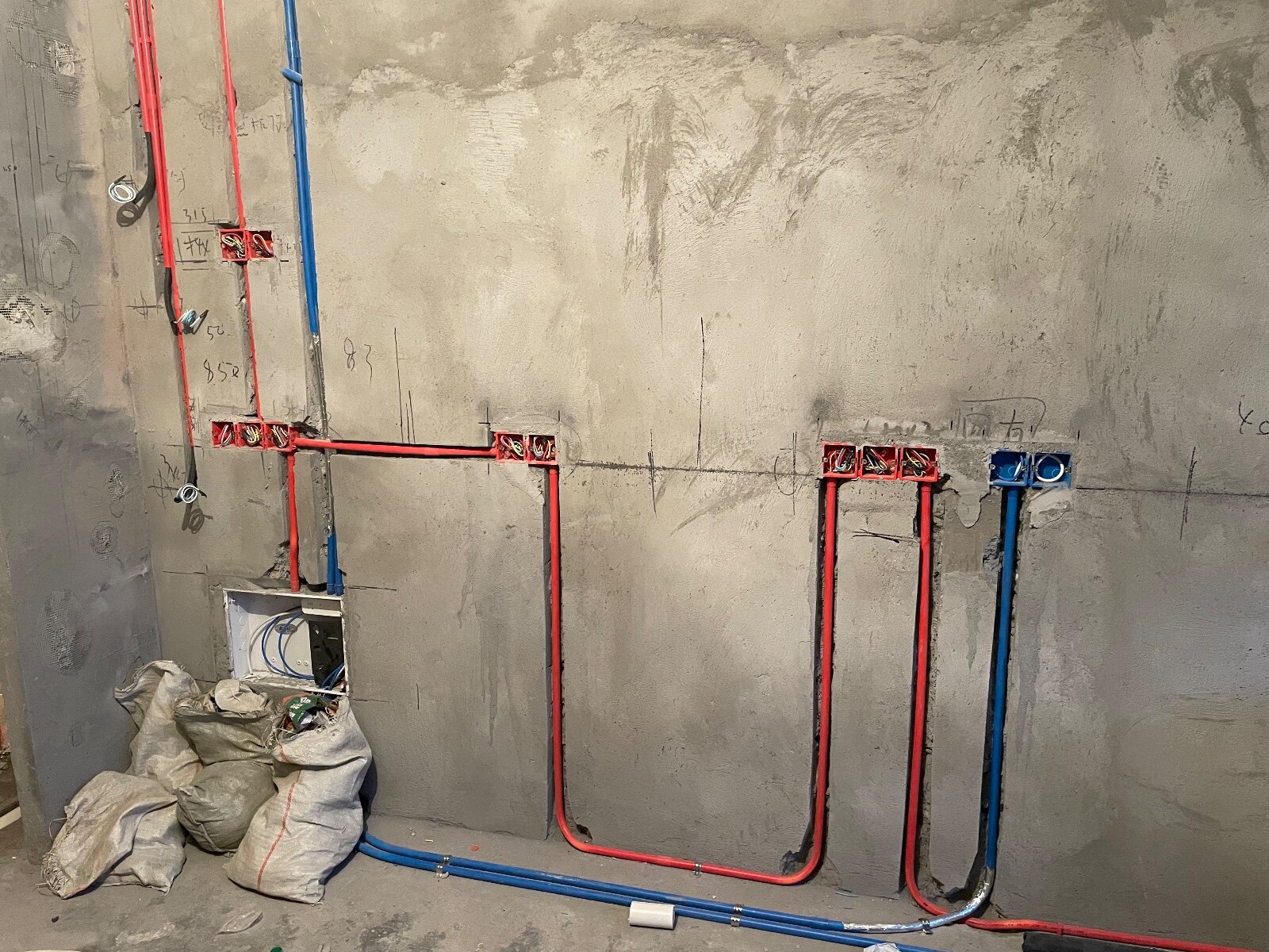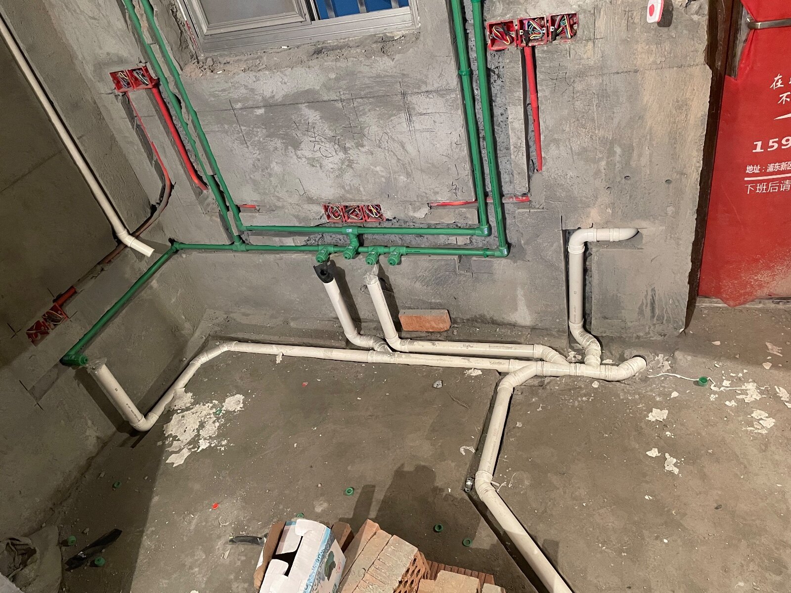上周泥工完工,周一过去估计剩了些浆,泥工也不处理就直接铺在了厨房地上,完全不平整,还高出了客厅地面,不像正常的高度客厅高于厨房高于卫生间,也没做止水坎,今后如果我开放厨房漏水肯定得流到客厅去,等待整改方案和落实。今天电工完工了,前两天材料验收,发现合同签好的超六类网线,送的是六类,跟老板说了,本来还不肯,最后我明确指出粗细不同后给我重新送了。周五做水,然后跟装修公司说了六项整改内容(1.厨房地面高于客厅;2.没做止水坎;3.门厅没做正;4.卫生间门高度不足2m;5.房梁粉层没铲干净。),等待整改方案。