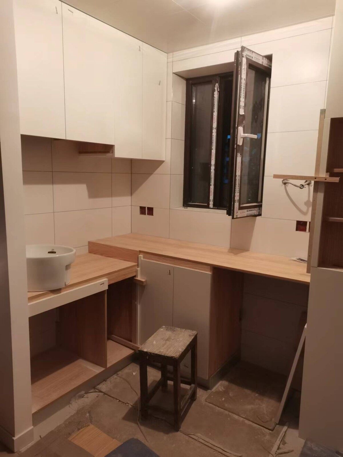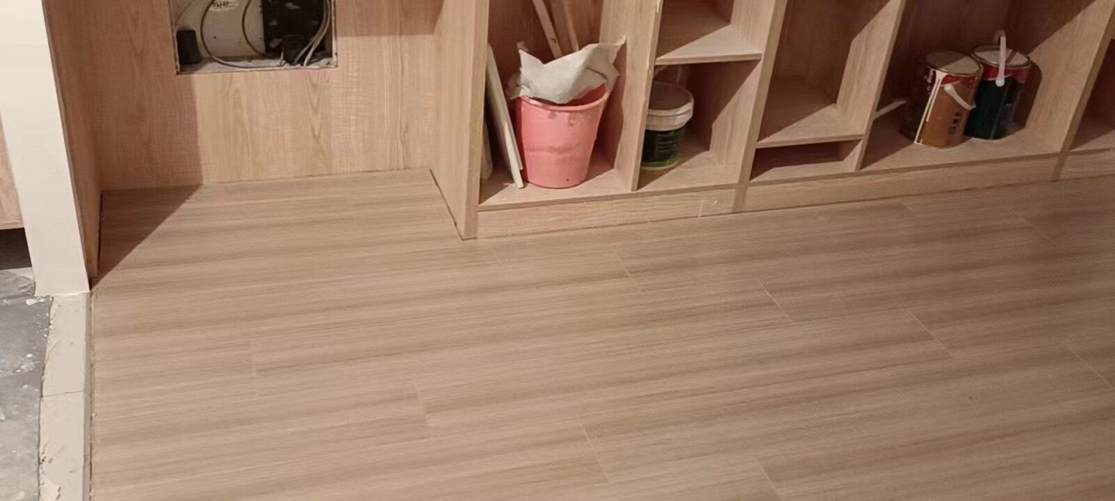 泥木验收:瓷砖美缝已做,瓷砖平整度达标,没有空鼓丶爆瓷现象,台盆处阴阳角方正,家具现场制作,木工做工细致,封边光滑,卫生间门洞设计须仔细。