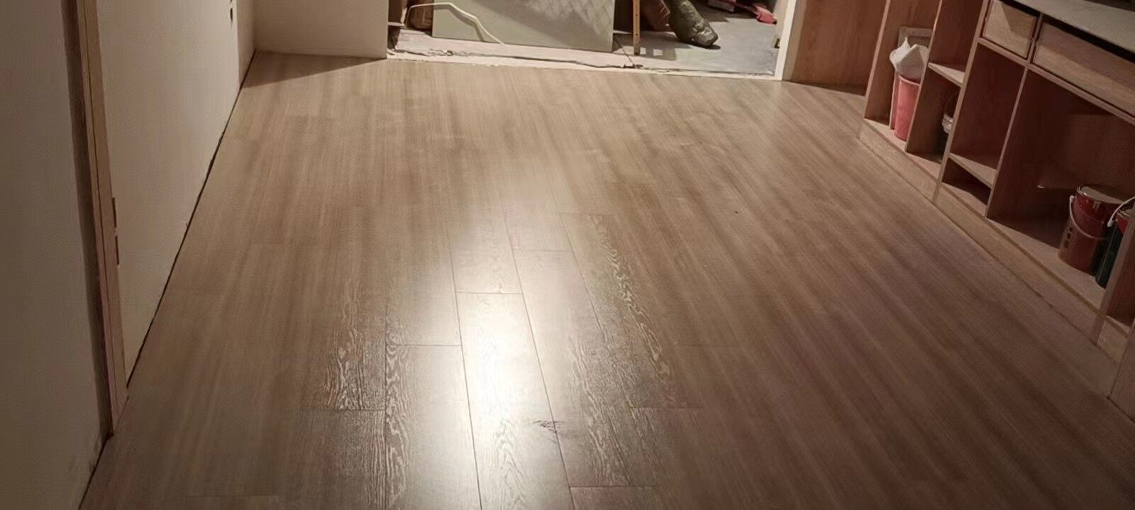 油漆工程已结束,剩下都是安装工程,今日地板已安装好,门套木门随后几天安排上了