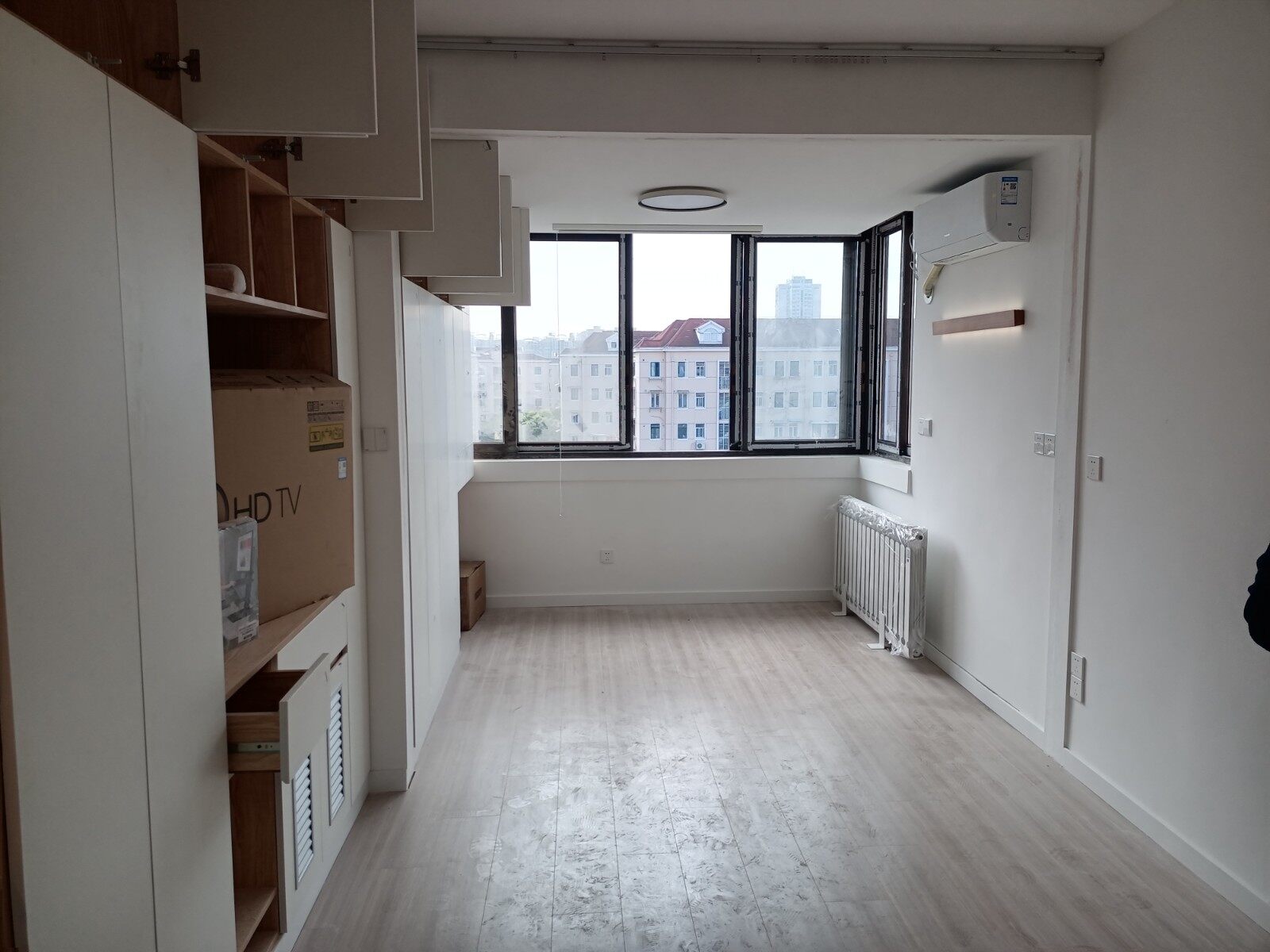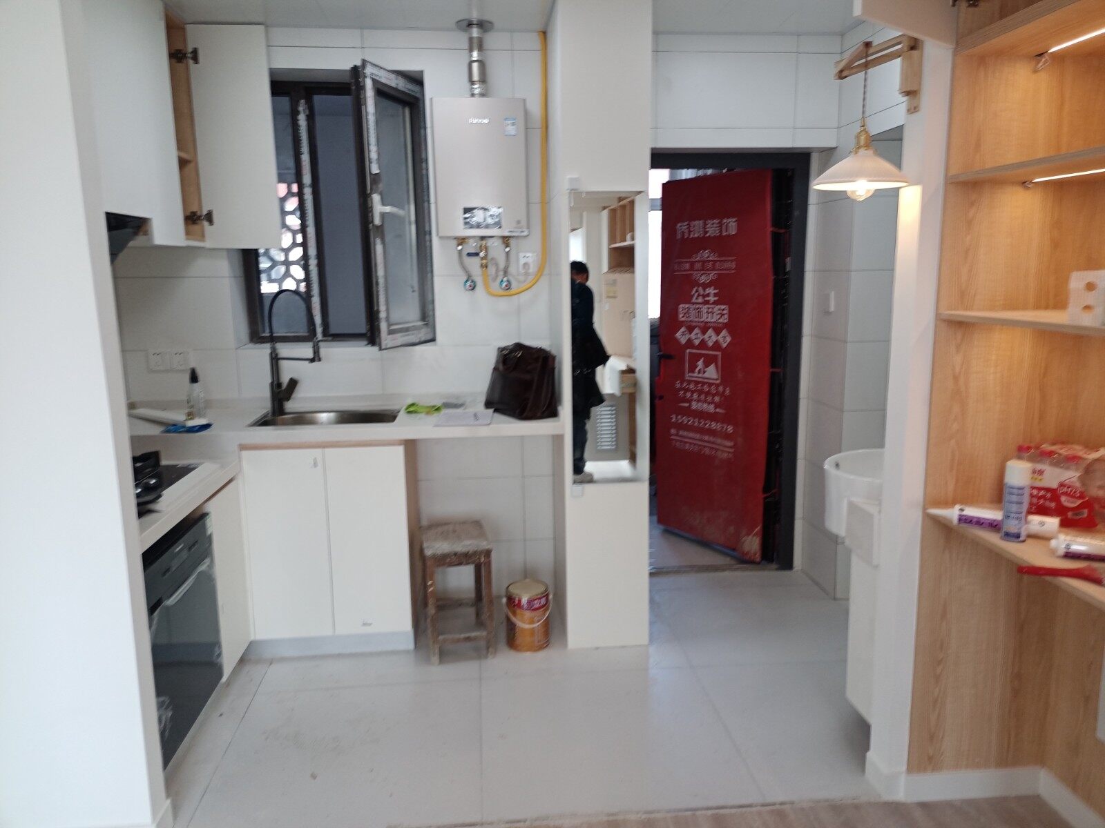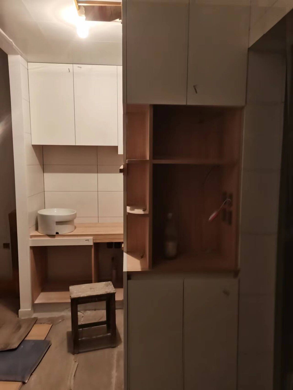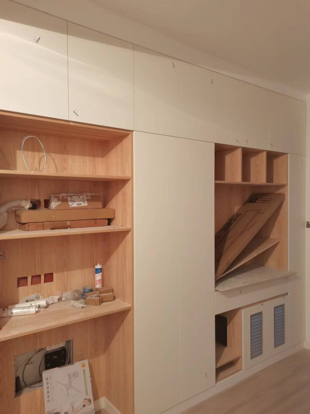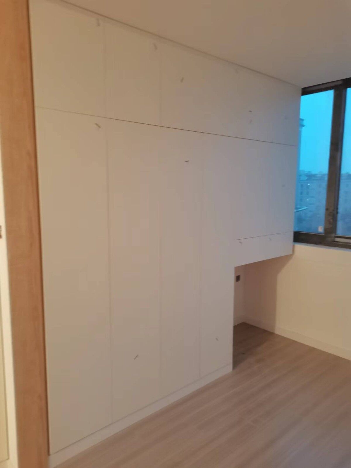 今日柜体门版已安装好,已进入竣工阶段,剩下移门还未安装