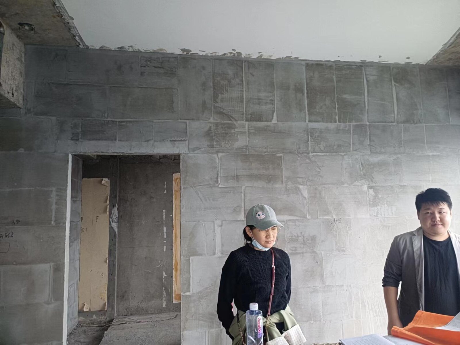 泥工砌粉墙施工进行中。设计师和施工队详细水电交底临近国庆长假.会合理施工安排.保质保量保工期: