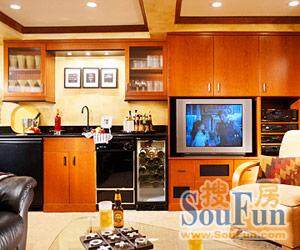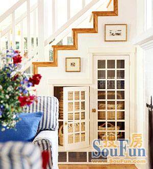同样是在楼梯下的位置,电视机安放在这里能有效节约空间,不过要求空间稍大一些,还要装得下DVD机、碟片等等。