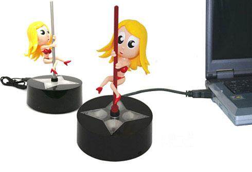 办公室生活总是太沉闷,除非你对面正好有个美女和你大玩暧昧,否则每天的上班时间对任何一个健康的人来说都是折磨。所以总得找点乐子,比如说USB热**郎(USB Pole Dancer)。你想象的一样,USB热**郎能在钢管上做出各种花式来取悦你,无论是脚下的闪光舞台,还是脸上那动画味十足的大眼睛,都是你每一天的不错调剂。