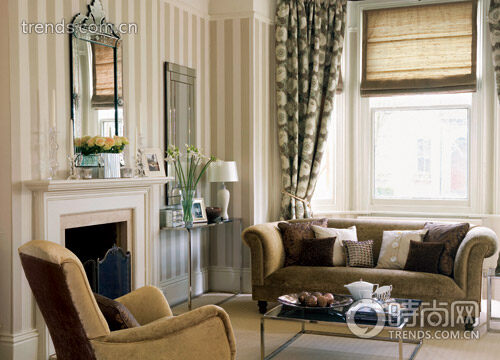 人们喜欢在客厅运用中性色调,认为这样可以永不过时。可是,中性色调、实木家具与厚重沙发面料的组合,往往令整个空间显得暗淡陈旧。室内设计师的窍门是:利用镜子和玻璃表面的装饰品,为空间带来闪亮高调的效果。