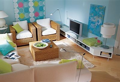最能体现客厅清爽风格的色彩当然是各种各样的蓝色,仿佛在蛋清里搅拌过的柔嫩的蓝色,变幻无穷,都是对客厅色彩的绝好演绎,且在视觉上有增大空间的感觉