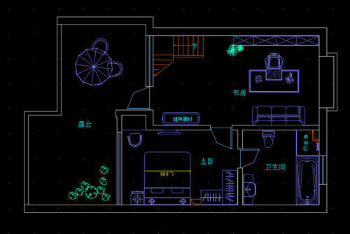 二楼空间原封不动保留了基础建设的格局,可见房屋建设的合理性。应业主的需求,设计师在书房左侧留出了很大的空间,在该区域放置了体量很大的健身器材。