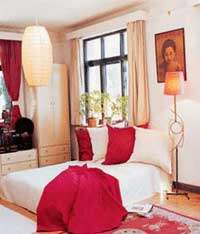 喜欢这个卧室的原因,是因为它既古典又现代。房顶挂着的纸灯笼,墙上30年代的上海女子,这些细节仿佛都让人感觉回到了那个年代。但是请注意哦,卧室中最重要的家具——床,是没有床脚的哦。是不是有点榻榻米的感觉?而白色和红色的鲜明搭配又好像暗示着主人是个性情女子哦!