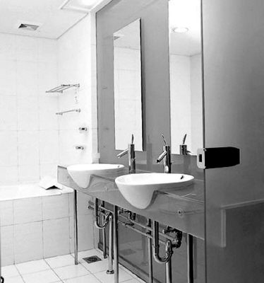 卫生间的陶瓷件数量不止一件,数件陶瓷制品如坐便器、洗面盆、皂盒、手纸盒、墩布池等造型颜色只有一致或接近,才能和谐美观。