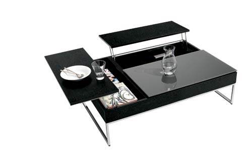 这款造型简约、雅致的茶几在使用功能上给人们提供了很大的便利。如变形金刚一般可以“变形”的设计令茶几能够在顷刻间变化出两个独立的小桌和两个用以存放杂志、遥控器等物品的收纳槽。在流行“多功能、大容量”家居用品的今天,这款茶几迎合了很多消费者的口味。