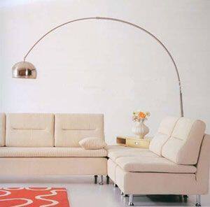 落地钓鱼灯那长长的灯臂将光线投注在客厅的中央,像一位悠闲自得的垂钓者,享受着惬意的午后时光。银色的外壳打破了黑色的沉寂。这款钓鱼灯特别适合于面积较大的空间。书柜本身的开放式设计,贴墙而立的超大容量,尽情的收纳藏书,亮色书柜与钓鱼灯搭配把更多的空间还原给客厅会客的本质功能。