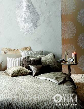概要: 注重设计感与品质的床品,带给你的不仅是赏心悦目的形式,更是自由自在的心情与一夜安眠的体验。与今季时装风尚同步,风格多元的床品,视觉抢眼,浪漫热情。 在装修风格中加入古典元素,搭配有抽象纹理、色调柔和、质感细腻的床品,给卧室带来华丽优雅的感觉。在床头不规则地堆放不同质感的靠包,融入一些高亮度的金属色,使复古中增添时尚感,并充满舞台设计效果。