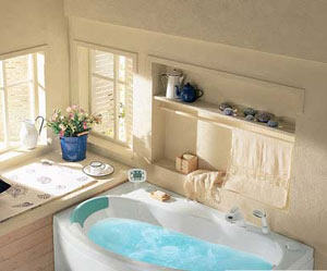 典型标志:这种乡村情调的卫浴空间有着一种女性特征,瓷砖的颜色是暖色的,墙壁上挂着画,还有装饰布艺、器皿和盆栽植物,如同19世纪的浴缸一样雅致。